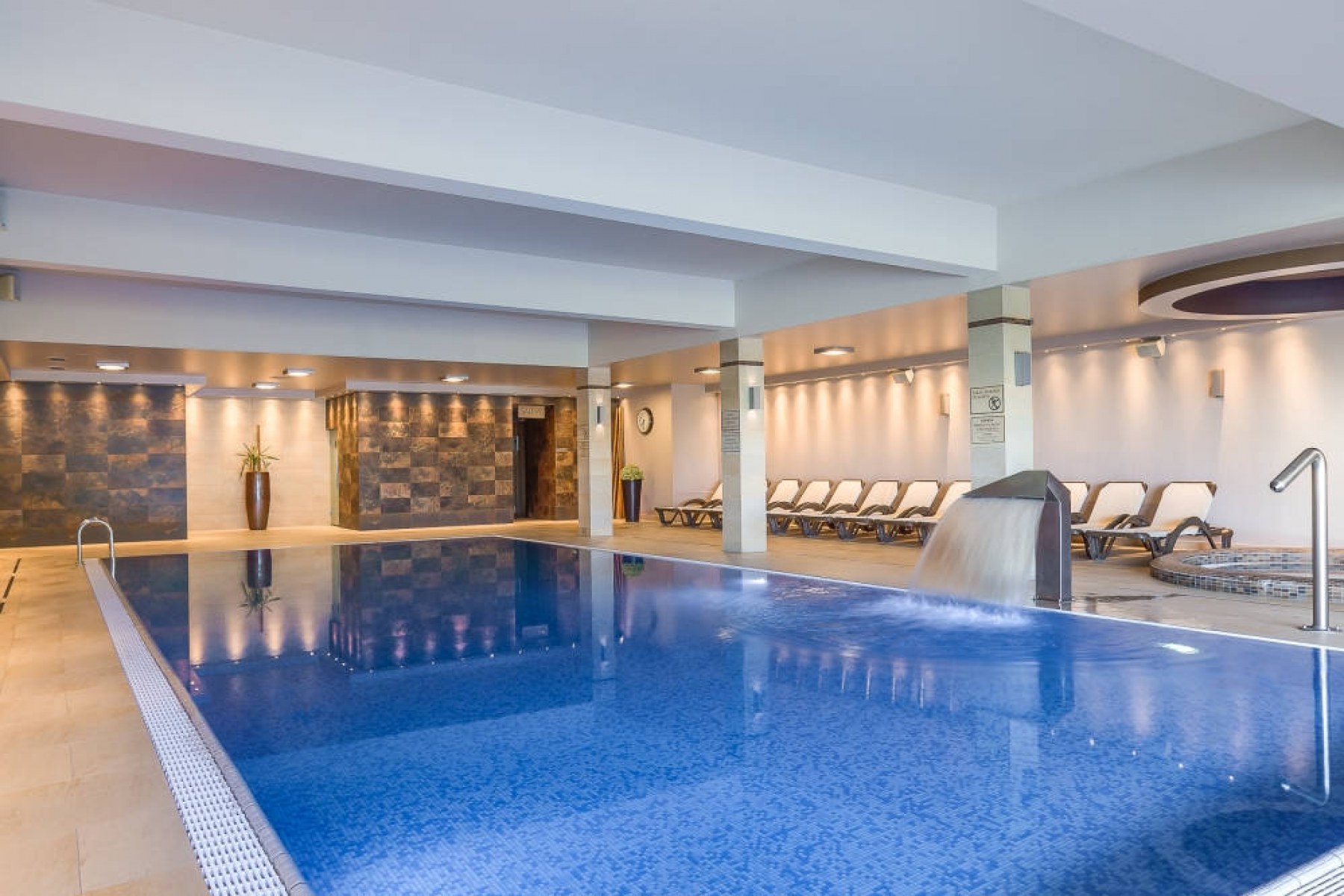 W kompleksie SPA znajdują się między innymi: basen z biczami wodnymi oraz przeciwfalą, jacuzzi, sauna sucha i bio-sauna, a także strefa wypoczynku z leżakami i pięknym widokiem. W basenie zastosowaliśmy technologię uzdatniania wody DAISY, dzięki której woda jest krystalicznie czysta i bezpieczna, a także pozbawiona zapachu chloru.